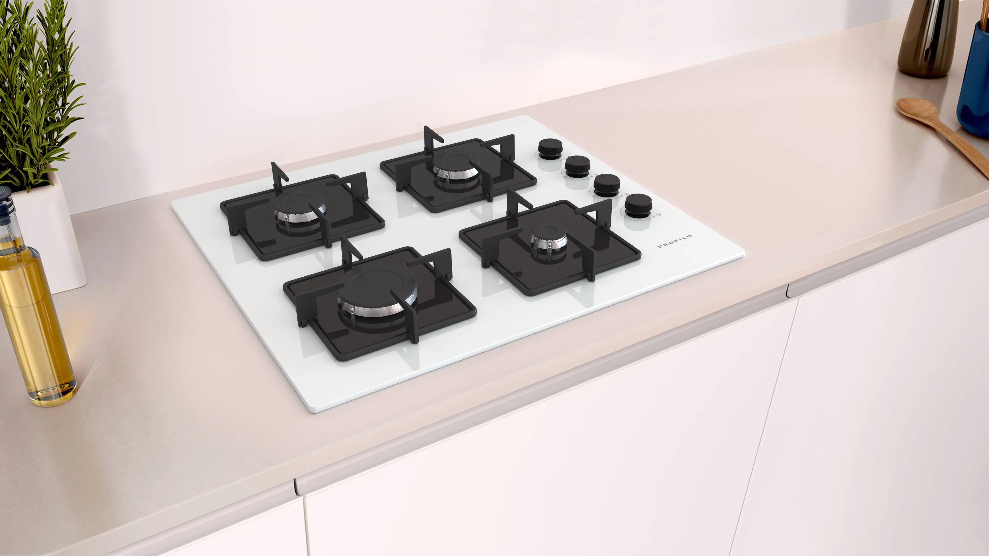 Gazlı Ocak 60 cm Sert cam, Beyaz